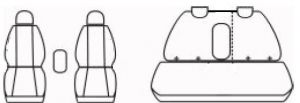 Zadní opěradlo dělené za řidičem se zadní loketní opěrkou, isofixy. Pozor vzadu pouze 2 opěrky hlavy. Přídavné zipy pro usnadnění montáže - nic nenatahujeme " násilím".Velmi pevná a silná automobilová čalounická látka + molitan + ochranná mřížka.