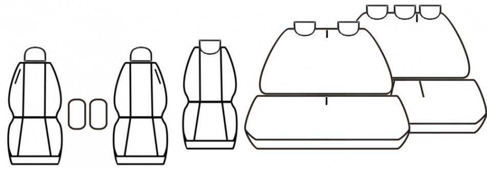 Sedadlo řidiče a spolujezdce, 2x loketní opěrka, 2 opěrky hlavy.