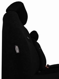 Zadní opěradlo dělené za spolujezdcem, zadní lavice nedělená, kapsy, 5 opěrek hlavy. Velmi kvalitní, silné autopotahy z čalounické látky včetně zadní části opěradel.
